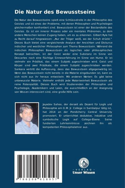 Die Natur des Bewusstseins spielt eine Schlüsselrolle in der Philosophie des Geistes und ist eines der Probleme, mit denen Philosophen und Psychologen gleichermaßen konfrontiert sind. Bewusstsein ist einer der Bestandteile des Geistes. Es ist ein innerer Prozess oder ein mentales Phänomen, zu dem andere Menschen keinen Zugang haben, um es zu erkennen. Gilbert Ryle hat zu Recht darauf hingewiesen: "Nur der Träger weiß, wo der Schuh drückt." Dieses Buch bietet eine vergleichende Analyse der Ansichten und Diskurse indischer und westlicher Philosophen zum Thema Bewusstsein. Während die indischen Philosophen Bewusstsein als logisches oder philosophisches Konzept betrachten, ist der Geist weder eine Substanz im Sinne von Descartes noch eine flüchtige Sinneserfahrung im Sinne von Hume. Er ist vielmehr ein Prädikat, das einem Subjekt zugeschrieben wird. Geist und Körper sind zwei Prädikate, die einem Subjekt zugeschrieben werden. Sankara vertritt die Auffassung, dass das Bewusstsein allgegenwärtig ist. Wenn das Bewusstsein nicht bereits in die Materie eingebunden ist, kann es sich nicht aus ihr heraus entwickeln. Mit anderen Worten: Es gibt keine unbewusste Materie. Vielmehr enthält jede Materieeinheit Bewusstsein als reine Potenzialität. Dieses Buch wird Studierenden der Philosophie und Psychologie, Akademikern und Laien, die ausschließlich an der Aneignung von Wissen interessiert sind, eine große Hilfe sein.