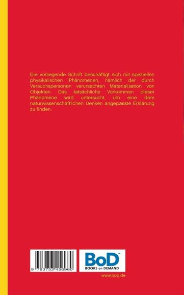 Die vorliegende Schrift beschäftigt sich mit speziellen physikalischen Phänomenen, nämlich der durch Versuchspersonen verursachten Materialisation von Objekten. Das tatsächliche Vorkommen dieser Phänomene wird untersucht, um eine dem naturwissenschaftlichen Denken angepasste Erklärung zu finden.