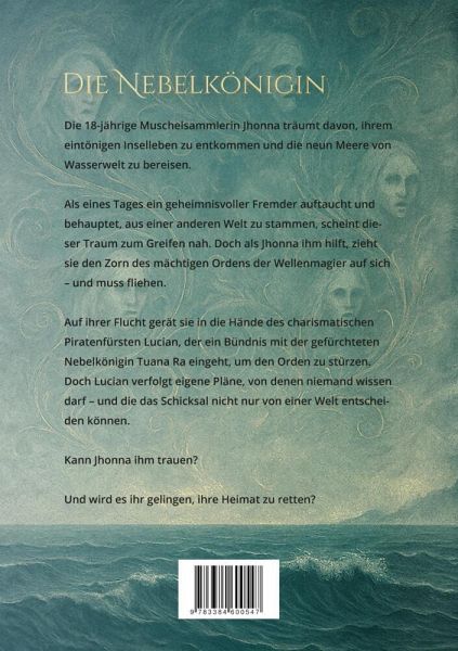 Die 18-jährige Muschelsammlerin Jhonna träumt davon, dem eintönigen Inselleben zu entfliehen und die neun Meere von Wasserwelt zu bereisen. Die Chance dazu bietet sich ihr, als eines Tages ein Fremder auftaucht und behauptet, aus einer anderen Welt zu stammen. Als Jhonna ihm hilft, gerät sie ins Visier des Ordens der Wellenmagier und muss fliehen - genau in die Hände des charismatischen Piratenfürsten Lucian. Um Wasserwelt von der Unterdrückung der Wellenmagier zu befreien, geht er ein Bündnis mit der gefürchteten Nebelkönigin Tuana Ra ein - und verfolgt dabei eigene Pläne, von denen er niemandem erzählt.Kann Jhonna ihm vertrauen? Und wird es ihr gelingen, ihre Heimat zu retten?___In einer Welt der Stürme und herumtreibenden Inseln, in der der ruchlose Orden der Wellenmagier nach der Herrschaft strebt, gibt es nur eine Hoffnung für die Freiheit: ein Bündnis zwischen dem Piratenfürsten der neun Meere und der gefürchteten Nebelkönigin.Ein rasantes Abenteuer voller Piraten, Flüche und Magie!
