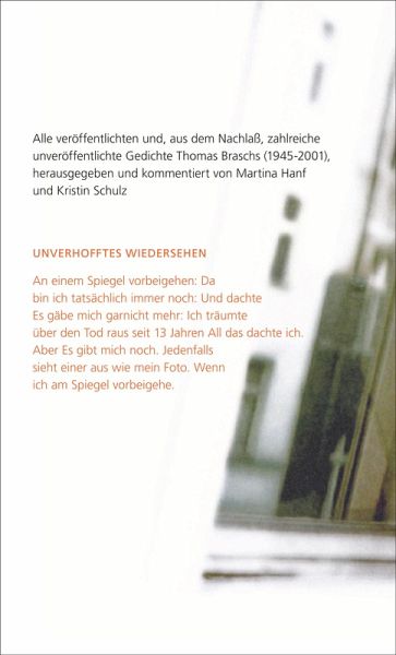 Thomas Brasch, Dichter, Dramatiker, Filmschaffender und Übersetzer, eine der markantesten Figuren der neuen deutschen Literatur, wurde 1945 in Westow/Yorkshire (England) als Sohn jüdischer Emigranten geboren und starb 2001 in Berlin. Bis zu dem Jahr, in dem er die DDR verließ (1976), lebte er vorwiegend in Ostberlin. Vor allem Braschs Übersetzungen der Werke von Shakespeare und Tschechow werden auf deutschsprachigen Bühnen viel gespielt. Am 19. Februar 2025 wäre Brasch 80 Jahre alt geworden.