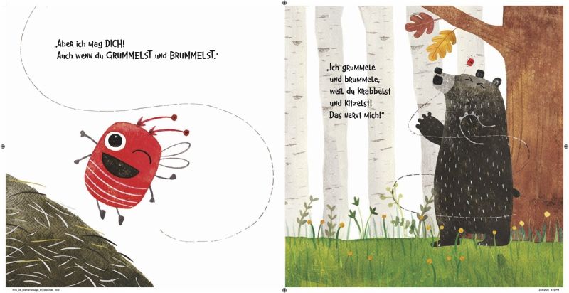 "Du bist so knuddelig, lieber Bär, und dein Fell ist so flauschig kuschelig!"Ein kleiner Käfer sucht ein neues Zuhause. Er hat sich das wuschelige und warme Fell des Bären ausgesucht. Doch der will nur seine Ruhe haben und ist genervt. Alles juckt und kitzelt! Er macht dem Käfer klar, dass er nicht erwünscht ist, aber vergeblich. Ob die Eule den beiden helfen kann?- Vorlese-Spaß: lustige Geschichte mit Lautmalereien- Über nervige Situationen und wie man damit umgeht- Wie man Grenzen setzt und Konflikte lösen kann- Über das Feingefühl zu wissen, wann man jemanden störtFür Kinder ab 3 Jahren