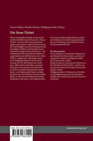 Dieser Sammelband bietet einen umfassenden Einblick in das Wesen der "Neuen Türkei". Die seit 2002 ununterbrochen regierende moderat-islam(ist)ische Partei für Gerechtigkeit und Entwicklung und ihr damaliger Anführer und heutiger Staatspräsident Erdogan haben den innen- und außenpolitischen Wandel der Türkei vorangetrieben und selbstbewusst die "Neue Türkei" proklamiert. Allerdings weicht die anfängliche Euphorie der Ernüchterung. Der EU-Beitrittsprozess steckt fest, während Vorwürfe über autoritäre Tendenzen, Korruption, Einmischung in die Privatsphäre, Reislamisierung der Innen- und Außenpolitik lauter werden. Experten aus Deutschland und der Türkei liefern in diesem Sammelband kritische Einblicke in die Innen- und Außenpolitik des sich im Umbau befindlichen Landes und erläutern sowohl Errungenschaften als auch Probleme der türkischen Transformationsgesellschaft.