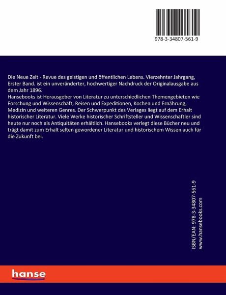 Die Neue Zeit - Revue des geistigen und öffentlichen Lebens. Vierzehnter Jahrgang, Erster Band. ist ein unveränderter, hochwertiger Nachdruck der Originalausgabe aus dem Jahr 1896.Hansebooks ist Herausgeber von Literatur zu unterschiedlichen Themengebieten wie Forschung und Wissenschaft, Reisen und Expeditionen, Kochen und Ernährung, Medizin und weiteren Genres. Der Schwerpunkt des Verlages liegt auf dem Erhalt historischer Literatur. Viele Werke historischer Schriftsteller und Wissenschaftler sind heute nur noch als Antiquitäten erhältlich. Hansebooks verlegt diese Bücher neu und trägt damit zum Erhalt selten gewordener Literatur und historischem Wissen auch für die Zukunft bei.
