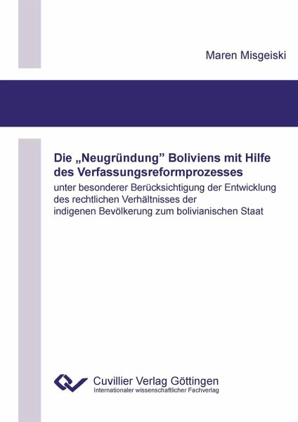 Hintergrund der Arbeit ist ein politischer Umwälzungsprozess in Bolivien, der nach politisch wie wirtschaftlich instabilen Jahren zu Beginn dieses Jahrtausends zunächst in einen Regierungswechsel und schließlich in einen konfliktreichen Verfassungsreformprozess mündete. Die neue Regierung versprach eine politische Neuordnung ("Neugründung") des Staatssystems mittels einer Verfassunggebenden Versammlung, mit deren Hilfe eine Verfassung erarbeitet werden sollte, in der dem kulturellen Pluralismus Boliviens paritätisch Rechnung getragen wird. Im Rahmen der Analyse dieses Reformprozesses, der sich schwerpunktmäßig auf die Jahre 2006 bis 2009 bezieht, ist der Fokus auf die Frage gerichtet, ob die Auswirkungen auf das rechtliche Verhältnis der indigenen Bevölkerung zum bolivianischen Staat es erlauben, von einer staatlichen Neuaufstellung zu sprechen. Das Werk aus dem Bereich des Staats- und Verfassungsrechts wird ergänzt durch verfassungsvergleichende, historische sowie politikwissenschaftliche Darstellungen. Die besondere Rolle der Verfassung und der für den deutschen Betrachter teils ungewöhnliche Umgang mit geschriebenem Recht im bolivianischen Kontext werden im Auge behalten, wodurch, ergänzend zur Analyse des konkreten Geschehens, eine Einschätzung zur Funktion der Verfassung und ihres Reformprozesses in Bolivien vorgenommen wird.