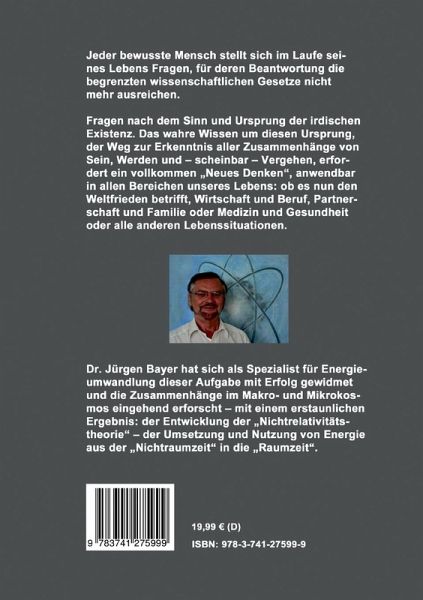 Jeder bewusste Mensch stellt sich im Laufe seines Lebens Fragen, für deren Beantwortung die begrenzten wissenschaftlichen Gesetze nicht mehr ausreichen.Fragen nach dem Sinn und Ursprung der irdischen Existenz. Das wahre Wissen um diesen Ursprung, der Weg zur Erkenntnis aller Zusammenhänge von Sein, Werden und - scheinbar - Vergehen, erfordert ein vollkommen "Neues Denken", anwendbar in allen Bereichen unseres Lebens: ob es nun den Weltfrieden betrifft, Wirtschaft und Beruf, Partnerschaft und Familie oder Medizin und Gesundheit oder alle anderen Lebenssituationen.