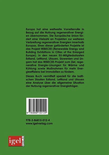 Europa hat eine weltweite Vorreiterrolle in Bezug auf die Nutzung regenerativer Energien übernommen. Die Europäische Union fördert eine Vielzahl an Projekten zur weiteren Verbreitung regenerativer Energien innerhalb Europas. Eines dieser geförderten Projekte ist das Projekt REBECEE (Renewable Energy and Building Exibitions in Cities of the Enlarged Europe). In den neuen EU-Mitgliedsstaaten Estland, Lettland, Litauen, Slowenien und Ungarn hat das REBECEE-Projekt zum Ziel, regenerative Energie-Lösungen für Wärme und Kühlung sowie Maßnahmen für mehr Energieeffizienz bei Immobilien zu fördern. In ausgewählten Städten dieser Länder sowie in Schweden und Deutschland werden zu diesem Zweck Bauausstellungen realisiert, welche die praktische Umsetzung der beschriebenen Möglichkeiten der regenerativen Energienutzung für eine breite Öffentlichkeit veranschaulichen. Bei Beginn des Projektes wurde deutlich, dass speziellfür die baltischen Staaten Estland, Lettland und Litauen kaum zusammenfassende Berichte oder Analysen über die allgemeine Situation der Nutzung regenerativer Energieträger zur Verfügung stehen. Diese Informationen mit Hilfe einer detaillierten Branchenanalyse zu generieren ist Zweck dieser Untersuchung.