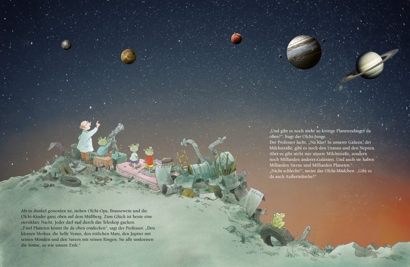 Mit den Olchis im Weltraum: Ein turbulentes Bilderbuch für Kinder ab 4 Jahren über eine aufregende Reise ins All. Ein galaktisches Lesevergnügen: Die temporeiche Vorlesegeschichte von Erhard Dietl basiert auf der zweiten Olchi-Planetarium-Show. Spannendes Kinderwissen: Das Olchis-Buch vermittelt spielerisch Fakten über Außerirdische, Planeten und das Leben im All. Tolle Weltall-Bilder: Lustige Illustrationen vor realen Fotohintergründen erwecken das fröhliche Olchis-Kinderbuch zum Leben. Lehrreich und unterhaltsam: Ein Muss für kleine Weltraum-Fans, die beim Lesen auch noch etwas lernen wollen.