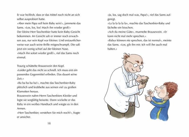 Die Wunschmaschine ist kaputt! Das Sams und Herr Taschenbier bitten Professor Brausewein, sie zu reparieren. Doch als das Sams in Brauseweins Labor an einer Flasche mit Verjüngungsmittel rumspielt, verwandelt es Papa Taschenbier aus Versehen in ein Baby! Da die Olchis sich ja als Familie mit Babys gut auskennen, zieht das Sams mit Baby Taschenbier auf den Schrottplatz. Während Brausewein den Schrottplatz nach einem Ersatzteil für die Maschine absucht, versuchen das Sams und die Olchis das Taschenbier-Baby zu bespaßen. Ob es Professor Brausewein gelingen wird, Papa Taschenbier zurückzuverwandeln ...?