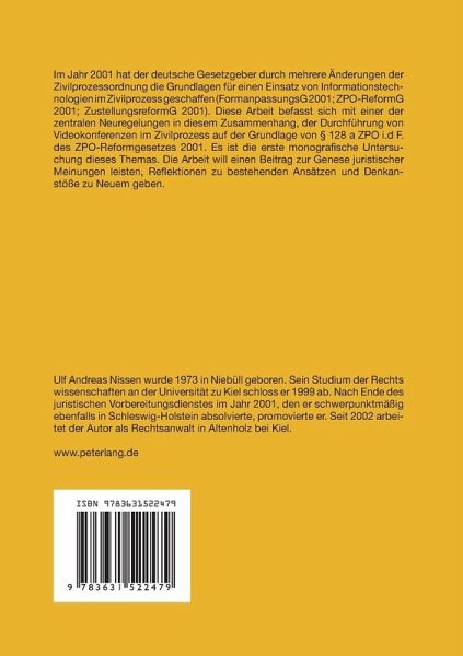 Im Jahr 2001 hat der deutsche Gesetzgeber durch mehrere Änderungen der Zivilprozessordnung die Grundlagen für einen Einsatz von Informationstechnologien im Zivilprozess geschaffen (FormanpassungsG 2001; ZPO-ReformG 2001; ZustellungsreformG 2001). Diese Arbeit befasst sich mit einer der zentralen Neuregelungen in diesem Zusammenhang, der Durchführung von Videokonferenzen im Zivilprozess auf der Grundlage von