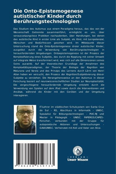 Das Studium des Autismus aus einem Paradigma heraus, das das von der Wissenschaft Getrennte zusammenführt, ermöglicht es uns, über voraussetzungslose Praktiken nachzudenken, über Handlungen, bei denen das autistische Kind in erster Linie als Subjekt, als Kind, mit Lernpotenzial, Wünschen und Bedürfnissen gesehen wird. Im Mittelpunkt dieser Untersuchung stand die Onto-Epistemogenese dreier autistischer Kinder, ausgelöst durch die Verwendung von Berührungstechnologien in herausfordernden Umgebungen. Ontoepistemogenese ist der Prozess der Komplexifizierung eines Subjekts, das durch die Kopplung mit seiner Umwelt auf integrale Weise transformiert wird, was sich auf alle Dimensionen seines Seins auswirkt. Auf der theoretischen Grundlage der Annahmen des Komplexitätsparadigmas, der Theorie der Biologie der Kognition von Maturana und Varela und des Prinzips des Lernens durch Lärm von Henri Atlan haben wir versucht, den Prozess der Kognition/Subjektivierung dieser Subjekte zu verstehen. Die Herangehensweise an den Autismus in dieser Forschung basiert auf neurowissenschaftlichen Studien zur Neuroplastizität. Die vorgeschlagene herausfordernde Umgebung entsteht durch die Verwendung von Spielen auf dem iPad sowie durch die Interventionen und Ansätze, während die Kinder mit den Geräten und der Umgebung interagieren.