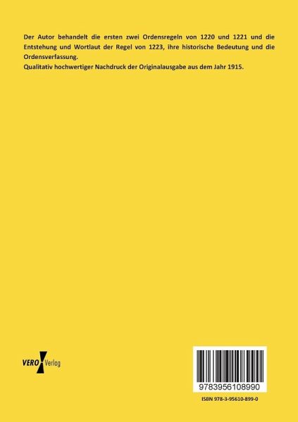 Der Autor behandelt die ersten zwei Ordensregeln von 1220 und 1221 und die Entstehung und Wortlaut der Regel von 1223, ihre historische Bedeutung und die Ordensverfassung. Qualitativ hochwertiger Nachdruck der Originalausgabe aus dem Jahr 1915.