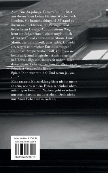Ann, eine 33-jährige Fotografin, flüchtet aus ihrem öden Leben für eine Woche nach London. Sie braucht dringend Abstand zu ihrem unglücklichen, langweiligen und liebesfreien Dasein. Auf ominösem Weg lernt sie John kennen, einen unglaublich attraktiven und charmanten Mann. Einen Mann, der pure Erotik ausstrahlt. Obwohl sie, wegen zahlreicher Enttäuschungen, standhaft Single bleiben will, kommen sich beide aufgrund magischer Anziehungskraft in Überschallgeschwindigkeit näher. Doch dann passiert etwas, dass Ann an allem zweifeln, fast verzweifeln lässt. Spielt John nur mit ihr? Und wenn ja, warum? Eine rasante Entwicklung lässt nichts mehr so sein, wie es schien. Einen scheinbar übermächtigen Feind im Nacken geht es schnell nur noch darum, zu überleben. Doch nicht nur Anns Leben ist in Gefahr.