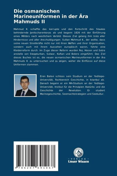 Mahmud II. schaffte das korrupte und den Fortschritt des Staates behindernde Janitscharenkorps ab und begann 1826 mit der Einführung eines Militärs nach westlichem Vorbild. Dieses Ziel gelang ihm trotz aller Hindernisse und aller Anschuldigungen. Sultan Mahmud II., der wollte, dass seine neuen Streitkräfte nicht nur mit ihren Waffen und ihrer Organisation, sondern auch mit ihrem Aussehen europäisch waren, führte eine Kleiderreform durch. Im Zuge dieser Reform wurden Fez, Hosen und Setre anstelle von Steppturban, Salwar, Kaftan und Bolero eingeführt. Das Ziel dieses Buches ist es, die neuen osmanischen Marineuniformen in der Ära Mahmuds II. zu untersuchen und zu zeigen, woher die Einflüsse auf diese Uniformen stammen.