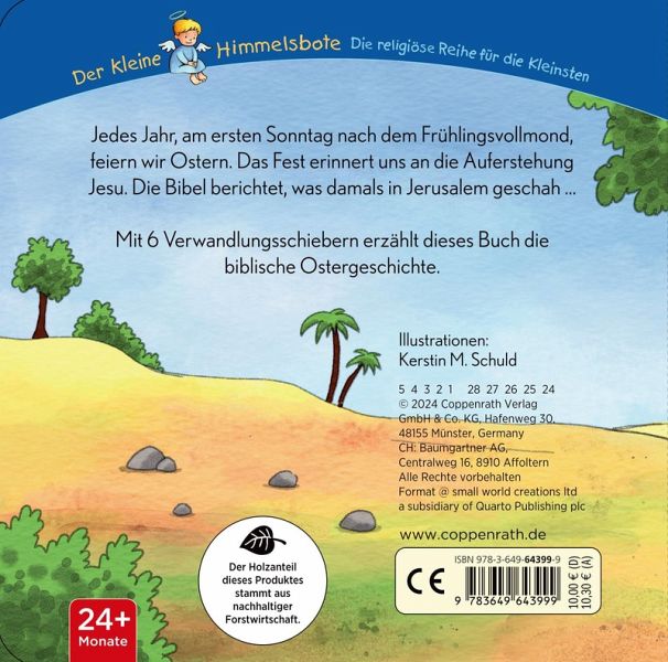 Die biblische Ostergeschichte kindgerecht erzähltStabiles Pappbilderbuch mit Verwandelschiebern und glänzender Goldfolie auf dem CoverInteraktive Schieber fördern motorische Fähigkeiten und Konzentrationsfähigkeit des KindesEinfühlsame Illustrationen von Kerstin M. SchuldIdeal zur Vorbereitung auf das Osterfest