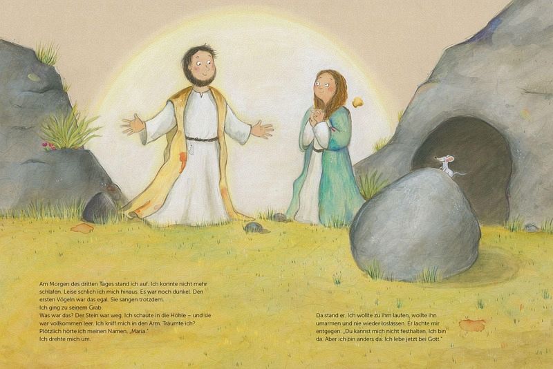 Was war das? Der Stein war weg. Ich schaute in die Höhle - und sie war vollkommen leer. Plötzlich hörte ich meinen Namen. Mein Herz wurde ganz warm, ich sah Jesus vor mir, wie er gelacht und geredet hatte. Der Wind fuhr durch die Bäume und flüsterte: "Ich bin bei euch." Ich könnte wetten, es war seine Stimme.