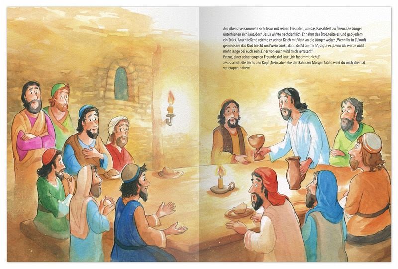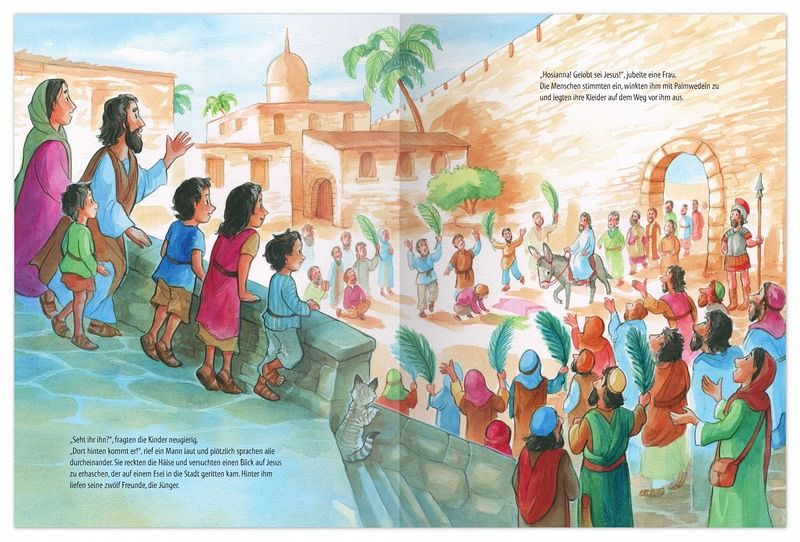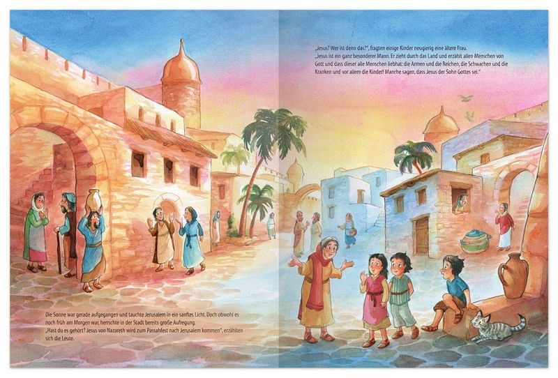 Dieses Bilderbuch nimmt Kinder mit in die besondere Geschichte von Jesus: Am Palmsonntag zieht er auf einem Esel in die Stadt Jerusalem ein, die Menschen freuen sich und winken mit bunten Palmzweigen. Gemeinsam mit seinen Freunden erlebt Jesus besondere Momente, das letzte Abendmahl, schwere Ereignisse und schließlich das große Osterwunder. So entdecken Kinder auf liebevolle Weise, warum Menschen seit über 2000 Jahren an Ostern Freude und Hoffnung feiern.