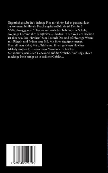 Eigentlich glaubt die 14jährige Fliss, mit ihrem Leben ganz gut klar zu kommen, bis ihr ein Flaschengeist erzählt, sie sei ein Dschinn! Völlig abwegig, oder? Fliss kommt nach Al-Dschinn, eine Schule, wo junge Dschinn ihre Fähigkeiten ausbilden. In der Welt der Dschinn ist alles neu. Die 'Hawkses' zum Beispiel! Das sind pferdeartige Wesen mit Flügeln und Federn statt Fell. Mit ihren neu gewonnenen Freundinnen Keira, Mary, Trisha und ihrem geliebten Hawkses Melody stolpert Fliss von einem Abenteuer ins nächste. Sie kommt einem alten Geheimnis auf die Schliche. Eine unglaublich mächtige Perle bringt sie in tödliche Gefahr...