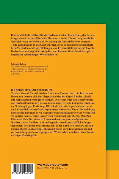 Raimund Schulz eröffnet Studierenden mit seiner Darstellung der Perserkriege einen konzisen Überblick über ein zentrales Thema der griechischen Geschichte. Er führt dabei grundlegend über ausgewählte Quellen in die Quellenarbeit sowie in geschichtswissenschaftliche Methoden und Fragestellungen ein. Er vermittelt prüfungsrelevantes Basiswissen und regt über Aufgaben und kommentierte Lektüreempfehlungen zur selbständigen Weiterarbeit an.