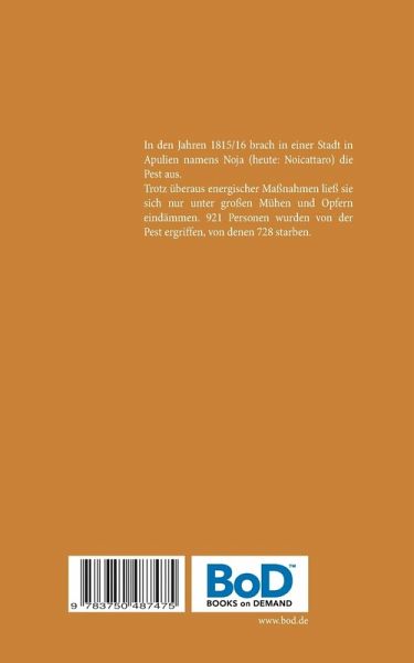 In den Jahren 1815/16 brach in einer Stadt in Apulien namens Noja (heute: Noicattaro) die Pest aus. Trotz überaus energischer Maßnahmen ließ sie sich nur unter großen Mühen und Opfern eindämmen. 921 Personen wurden von der Pest ergriffen, von denen 728 starben.