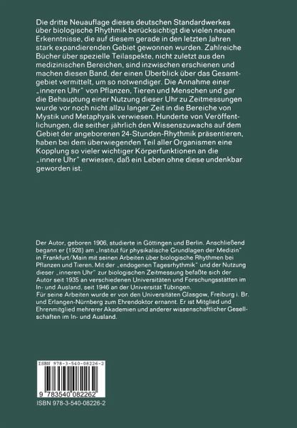 1. Einleitung.- a) Begriffsabgrenzung.- b) Historische Entwicklung.- Literatur.- 2. Grundphänomene.- a) Beispiele.- b) Arbeiten alle circadianen Uhren mit dem gleichen "Uhrwerk"?.- c) Periodenlängen.- d) Erblichkeit.- e) Verlust manifester Rhythmik.- f) Vorkommen der circadianen Rhythmik bei niederen und höheren Organismen.- g) Warum benutzen die Organismen für Zeitmessungen Oscillationen?.- Literatur.- 3. Ausklingen, Stillstand und Wiederauslösung der Rhythmik.- a) Fehlende Kopplung und Stillstand.- b) Ausklingen.- c) Art der auslösenden Faktoren.- d) Spezielle Fragen der Auslösung durch Licht und Dunkelheit.- e) Auslösung durch niedrige Temperatur.- f) Fehlen der Rhythmik in frühen Entwicklungsstadien.- Literatur.- 4. Celluläre Autonomie; Steuerungen und Wechselwirkungen zwischen Einzellern und in Vielzellern.- a) Einzeller, isolierte Organe, Gewebe und Zellen.- b) Steuerungen und Wechselwirkungen bei Einzellern und bei Pflanzen.- c) Steuerung bei niederen Tieren.- d) Steuerungen und Wechselwirkungen bei Wirbeltieren.- Literatur.- 5. Wirkung der Temperatur.- a) Temperatur und Periodenlänge.- b) Temperaturwirkungen auf verschiedene Phasen des circadianen Cyclus.- c) Synchronisation durch Temperaturcyclen.- d) Verhalten bei niedrigen Temperaturen.- Literatur.- 6. Wirkungen des Lichts.- a) Wirkung von LL und DD.- b) Licht als Zeitgeber.- Literatur.- 7. Ansätze zur Analyse der Schwingungskinetik.- a) Allgemeines.- b) Wirkung reduzierter Energiezufuhr.- c) Harmonische und asymmetrische circadiane Kurven.- d) Dämpfung, Ausklingen und Wiederauslösung.- e) Wirkungsweise der Zeitgeber in einer Kippschwingung.- f) Die Transients.- g) Die Refraktärstadien im circadianen Cyclus.- h) Schlußfolgerung.- Literatur.- 8. Ansätze zur biochemischen undbiophysikalischen Analyse.- a) Irreführende Ansätze.- b) Circadiane Enzymrhythmen.- c) Enzymproduktion.- d) Die mögliche Rolle des Zellkerns.- e) Die mögliche Rolle kurzperiodischer Enzymrhythmen.- f) Die mögliche Rolle biochemischer Oscillationen mit längeren Perioden.- g) Substanzwirkungen, die auf die mögliche Beteiligung von Membranen hinweisen.- h) Circadiane Veränderungen in Membranen.- i) Schlußfolgerungen.- Literatur.- 9. Einordnung in Umweltrhythmen.- a) Die synchronisierenden Faktoren.- b) Beispiele für Anpassungen an Umweltrhythmen.- c) Spezielle Fragen des Zeitgedächtnisses der Insekten.- Literatur.- 10. Nutzung der Uhr zum Richtungsfinden.- a) Grundphänomene.- b) Besonderheiten einzelner Arten.- Literatur.- 11. Beziehungen zwischen circadianen, tidalen und lunaren Rhythmen.- a) Endogen-tidale Rhythmik.- b) Beziehungen zu lunaren Rhythmen.- Literatur.- 12. Steuerung tagesperiodischer Schwankungen des Ansprechens auf Außenfaktoren.- a) Allgemeines.- b) Ansprechen auf Licht.- c) Ansprechen auf Temperatur.- d) Ansprechen auf chemische Faktoren.- e) Ansprechen auf Strahlungen.- Literatur.- 13. Nutzung der Uhr zur Tageslängenmessung.- a) Übersicht über Tageslängenmessungen.- b) Genauigkeit und Zuverlässigkeit der Tageslängenmessung.- c) Receptoren für die Tageslängenmessung.- d) Natur des Zeitmeßvorganges.- e) Unterscheidung von zunehmender und abnehmender Tageslänge.- f) Thermoperiodische Tageslängenmessung.- Literatur.- 14. Pathologische Phänomene.- a) Störungen unter dem Einfluß nicht-tagesperiodischer Außenrhythmen.- b) Störungen durch schnelle Phasenverschiebung der Außenrhythmik.- c) Schäden bei fehlender Synchronisation.- Literatur.