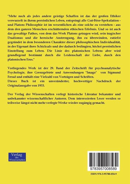 "Mehr noch als jedes andere geistige Schaffen ist das der großen Ethiker verwurzelt in ihrem persönlichen Leben, entspringt alle Gut-Böse-Spekulation - und Platons Philosophie ist im wesentlichen als eine solche zu verstehen - aus dem den ganzen Menschen erschütternden ethischen Erlebnis. Und so ist auch das gewaltige Pathos, von dem das Werk Platons getragen wird, sein tragischer Dualismus und die heroische Anstrengung, ihn zu überwinden, zutiefst gegründet in dem besonderen Charakter dieser philosophischen Individualität, in der Eigenart ihres Schicksals und der dadurch bedingten, höchst persönlichen Einstellung zum Leben. Die Linie des platonischen Lebens aber wird grundlegend bestimmt durch die Leidenschaft der Liebe, durch den platonischen Eros."