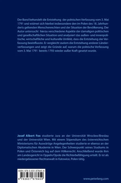 Der Band behandelt die Entstehung der polnischen Verfassung vom 3. Mai 1791 und widmet sich hierbei insbesondere den im Polen des 18. Jahrhunderts geltenden Menschenrechten und der Situation der Bevölkerung. Der Autor untersucht hierzu verschiedene Aspekte der damaligen politischen und gesellschaftlichen Situation und analysiert das außen- und innenpolitische, wirtschaftliche und kulturelle Umfeld, dass die Entstehung der Verfassung beeinflusste. Er vergleicht zudem die Entstehung anderer Länderverfassungen und zeigt die Gründe auf, warum die polnische Verfassung vom 3. Mai 1791 bereits 1793 wieder außer Kraft gesetzt wurde.