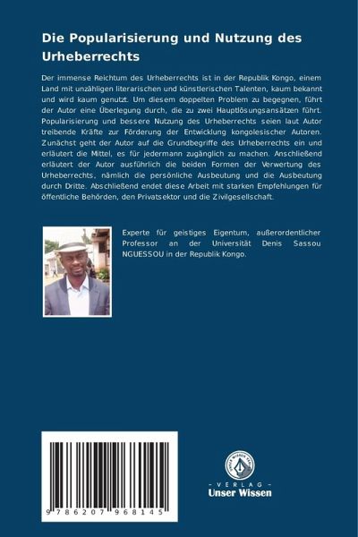 Der immense Reichtum des Urheberrechts ist in der Republik Kongo, einem Land mit unzähligen literarischen und künstlerischen Talenten, kaum bekannt und wird kaum genutzt. Um diesem doppelten Problem zu begegnen, führt der Autor eine Überlegung durch, die zu zwei Hauptlösungsansätzen führt. Popularisierung und bessere Nutzung des Urheberrechts seien laut Autor treibende Kräfte zur Förderung der Entwicklung kongolesischer Autoren. Zunächst geht der Autor auf die Grundbegriffe des Urheberrechts ein und erläutert die Mittel, es für jedermann zugänglich zu machen. Anschließend erläutert der Autor ausführlich die beiden Formen der Verwertung des Urheberrechts, nämlich die persönliche Ausbeutung und die Ausbeutung durch Dritte. Abschließend endet diese Arbeit mit starken Empfehlungen für öffentliche Behörden, den Privatsektor und die Zivilgesellschaft.