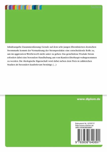 Gerade auf dem sehr jungen liberalisierten deutschen Strommarkt kommt der Vermarktung der Stromprodukte eine entscheidende Rolle zu, um im aggressiven Wettbewerb nicht unter zu gehen. Das gesichtslose Produkt Strom erfordert dabei eine besondere Handhabung, um vom Kunden überhaupt wahrgenommen zu werden. Die ökologische Eigenschaft wird dabei neben dem Preis in zahlreichen Studien als besonders kaufrelevant bestätigt.