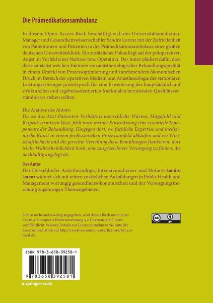 In diesem Open-Access-Buch beschäftigt sich der Universitätsmediziner, Manager und Gesundheitswissenschaftler Sandro Lorenz mit der Zufriedenheit von Patientinnen und Patienten in der Prämedikationsambulanz einer großen deutschen Universitätsklinik. Ein zusätzlicher Fokus liegt auf der präoperativen Angst im Vorfeld einer Narkose bzw. Operation. Der Autor plädiert dafür, dass diese zunächst weichen Faktoren von anästhesiologischer Behandlungsqualität in einem Umfeld von Prozessoptimierung und zunehmendem ökonomischen Druck im Bereich der operativen Medizin und Anästhesiologie der stationären Leistungserbringer prototypisch für eine Erweiterung des hauptsächlich auf strukturellen und ergebnisorientierten Merkmalen beruhenden Qualitätsverständnisses stehen sollten.