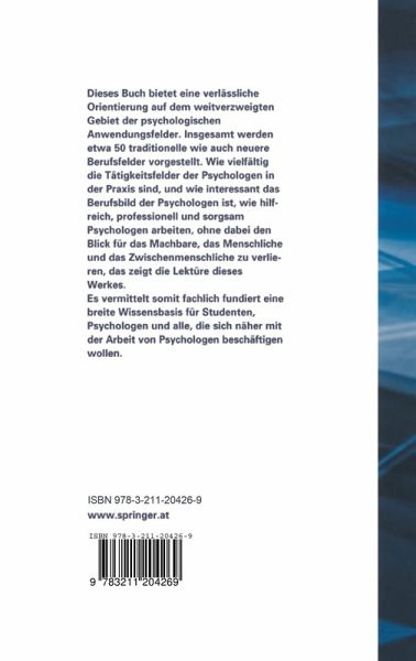 Ausbildung, Berufsstand, Berufsvertretung, Gesetzliche Verankerung.- Zur Lage von Forschung und Lehre in der Psychologie an österreichischen Universitäten und einige Bemerkungen zur Geschichte. Das Unmögliche versuchen.- Der Berufsverband für Österreichische Psychologinnen und Psycho logen (BÖP) - ein Brückenbauer zwischen Wissenschaft und Praxis.- Was die Psychologie aus ihrer Geschichte lernen kann.- Entwicklung und Weiterentwick lung des Psychologengesetzes.- Klassische Anwendungsfelder der Psychologie.- Psychologische Diagnostik - heute.- Arbeitspsychologie.- Die Entwicklung und Gestaltung der angewandten Psychologie im Österreichischen Bundesheer.- Zur Geschichte der Verkehrspsychologie in Österreich.- Die Schulpsychologie-Bildungsberatung - ein halbes Jahrhundert Psychologie für die Schule.- Die psychologische Studentenberatung.- Klinische Psychologie.- Zur Entwicklung der Psychotherapie in Österreich.- Gesundheitspsychologie - ein noch junges, aber bereits etabliertes Fach.- Neuere, bereits bewährte Anwendungsfelder der Psychologie.- Neuropsychologie in Österreich: Entwicklung - derzeitige Situation - Ausblick.- Umweltpsychologie in Österreich - ei ne Rückblende.- Krisenintervention in Österreich.- Gerontopsychologie in Österreich.- Personalentwicklung - eine Kernkompetenz der AWO-Psychologie.- Geschichte der Supervision in Österreich.- Sportpsychologie.- Computergestützte psychologische Diagnostik.- Psychologie und Internet - einige persönliche Belrachlungen.- Die Entwicklung der Mediation in Österreich.- Psychologie im Gesundheitswesen.- Gesundheitspsychologie und New Public Health: Identitätsfindung und Zukunftsoptionen für die Psychologie in Österreich.- Psychologie und Medizin. Eine historische Skizze.- Psychologinnen und Psychologenim Umfeld der Sozial-versicherung.- Psychologie im Krankenhaus.- Frauen, soziale Benachteiligung und psychische Gesundheit.- Maännerpsychologie. Das komplementäre Arbeitsfeld im Bereich der Mannergesundheit.- Psychoonkologie.- Psychologische Betreuung von Flüchtlingen in Österreich.- Der Stellenwert der Psychologie in der Suchtbehandlung.- Notf allp sychologie in Österreich.- Psychologische Hilfen in allen Lebensphasen.- Familienpsychologie.- : Von der Notwendigkeit einer Sexualpsychologie.- Psychologische Beratung in der frühen Kindheit: Früh genug - rechtzeitig - zeitger echt!.- Herausforderungen der psychologisch en Arbeit mit Jugendlichen.- Pädagogische Psychologie.- Psychologie in der Jugendwohlfahrt.- Frauen und feministische Einflüsse in der Psychologie.- Was ist Angehöngenarbeit? Neue Weg e der psychosozialen Begleilung von Angehörigen von Psychosekranken.- Psychologie in der Behindertenarbeit am Beispiel der Ambulalorien der VKKJ.- Psychologie in der Behindertenarbeit am Beispiel der Organisation Jugend am Werk.- Expertlnnen aus Erfahrung. Selbsthilfe und Psychologie.- Psychologie im Dienste der Gesellschaftsorganisation/im öffentlichen Interesse.- Psychologie und gesellschaftlich e Praxis am Beispiel von Kinder- und Jugendpolitik. Neue Arbeitsgebiete durch gesellschaftliches Engagement und Kreativitat.- Der Versuch einer Anstiftung zur "Cemelnde psychologie".- Politik und Gefühl.- Jugendamtspsychologie - eine Form angewandter Psychologie.- Der Psychologische Dienst im Rahmen des Arb eitsmarklservice.- Die Enlwicklung der modernen Suchtprävention in Oslerreich.- Psychologie im Österreichischen Slrafvollzug.- Familienpsychologische Begulachlung im Auftrag der Gerichte in Öslerreich.