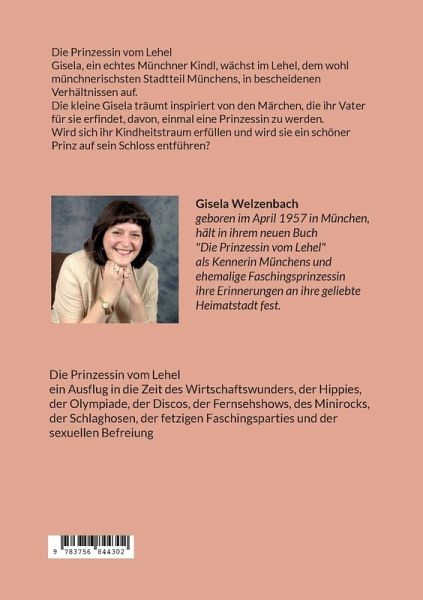 Gisela, ein echtes Münchner Kindl, wächst im Lehel, dem wohlmünchnerischsten Stadtteil Münchens, in bescheidenenVerhältnissen auf.Die kleine Gisela träumt inspiriert von den Märchen, die ihrVater für sie erfindet, davon, einmal eine Prinzessin zuwerden.Wird sich ihr Kindheitstraum erfüllen und wird sie ein schönerPrinz auf sein Schloss entführen?Die Prinzessin vom Lehel,ein Ausflug in die Zeit des Wirtschaftswunders, der Hippies, derOlympiade, der Discos, der Fernsehshows, des Minirocks, derSchlaghosen, der fetzigen Faschingsparties und der sexuellenBefreiung