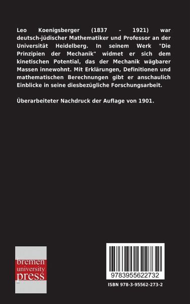 Leo Koenigsberger (1837 - 1921) war deutsch-jüdischer Mathematiker und Professor an der Universität Heidelberg. In seinem Werk \"Die Prinzipien der Mechanik\" widmet er sich dem kinetischen Potential, das der Mechanik wägbarer Massen innewohnt. Mit Erklärungen, Definitionen und mathematischen Berechnungen gibt er anschaulich Einblicke in seine diesbezügliche Forschungsarbeit.