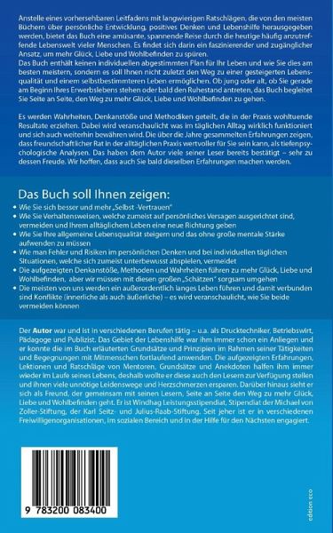 Der Autor war und ist in verschiedenen Berufen tätig - u.a. als Drucktechniker, Betriebswirt, Pädagoge und Publizist. Das Gebiet der Lebenshilfe war ihm immer schon ein Anliegen und er konnte die im Buch erläuterten Grundsätze und Prinzipien im Rahmen seiner Tätigkeiten und Begegnungen mit Mitmenschen fortlaufend anwenden. Die dargelegten Erfahrungen, Lektionen und Ratschläge von Mentoren, Grundsätze und Anekdoten halfen ihm immer wieder im Laufe seines Lebens, deshalb wollte er diese auch den Lesern mitgeben und ihnen viele unnötige Leidenswege und Herzschmerzen ersparen. Darüber hinaus sieht er sich als Freund, der gemeinsam mit seinen Lesern, Seite an Seite den Weg zu mehr Glück, Liebe und Wohlbefinden geht. Er ist Windhag Leistungsstipendiat, Stipendiat der Michael von Zoller-Stiftung, der Karl Seitz- und Julius-Raab-Stiftung. Seit jeher ist er in verschiedenen Freiwilligenorganisationen, im sozialen Bereich und in der Hilfe für den Nächsten engagiert.