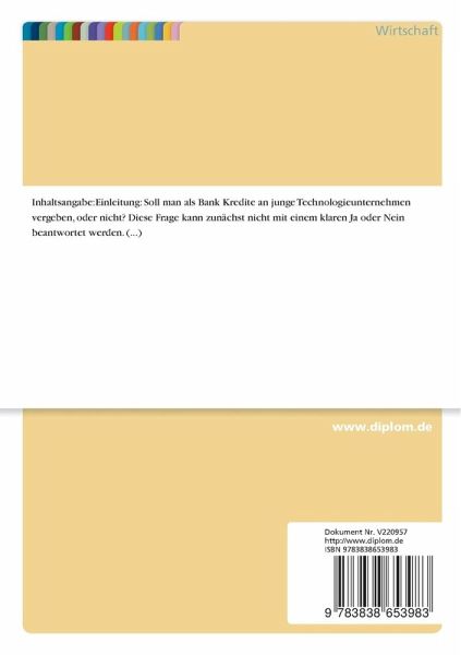 Soll man als Bank Kredite an junge Technologieunternehmen vergeben, oder nicht? Diese Frage kann zunächst nicht mit einem klaren Ja oder Nein beantwortet werden. Die aktuellen Insolvenzzahlen, die Ertragslage im Kreditgeschäft und die oft unzureichenden Kenntnisse des Kreditsachbearbeiters im Hinblick auf neue Technologien sprechen dagegen; umfangreiche Erträge aus Provisionsfolgegeschäften, Kooperationsmöglichkeiten mit öffentlichen Förderbanken oder schlicht der Imagegewinn lassen ein positives Veto erwarten.