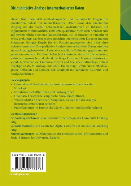 Internetbasierte Medien sind ein wichtiges Feld empirischer Analyse und speziell qualitativer Sozialforschung. Der Band behandelt methodologische und methodische Fragen der qualitativen Arbeit mit internetbasierten Daten sowie den qualitativen Umgang mit der Vielfalt verschiedener Medienformen im Internet, der sogenannten Multimodalität. Etablierte qualitative Methoden beziehen sich auf herkömmliche Kommunikationsformen, die im Internet in veränderter Weise praktiziert werden; zudem entstehen internetbasierte Daten in anderen Kontexten. Gängige Regeln für das Forschungsvorgehen sind nicht ohne weiteres umsetzbar. Die qualitative Analyse internetbasierter Daten erfordert andere Herangehensweisen, kann aber etablierte Techniken gegenstandsangemessen erweitern. Der Band beleuchtet klassische, statische Internetseiten, statische, dynamische und interaktive Blogs, Foren und Forumsdiskussionen, soziale Netzwerke wie Facebook, Twitter und Socialcast, Miniblogs, extrem flüchtige Chats, Mikroblogs und SMS. Die Beiträge liefern eine methodologische Reflexion und befassen sich detailliert mit konkreten Auswahl- und Analyseverfahren.