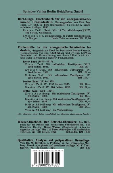 Dieser Buchtitel ist Teil des Digitalisierungsprojekts Springer Book Archives mit Publikationen, die seit den Anfängen des Verlags von 1842 erschienen sind. Der Verlag stellt mit diesem Archiv Quellen für die historische wie auch die disziplingeschichtliche Forschung zur Verfügung, die jeweils im historischen Kontext betrachtet werden müssen. Dieser Titel erschien in der Zeit vor 1945 und wird daher in seiner zeittypischen politisch-ideologischen Ausrichtung vom Verlag nicht beworben.