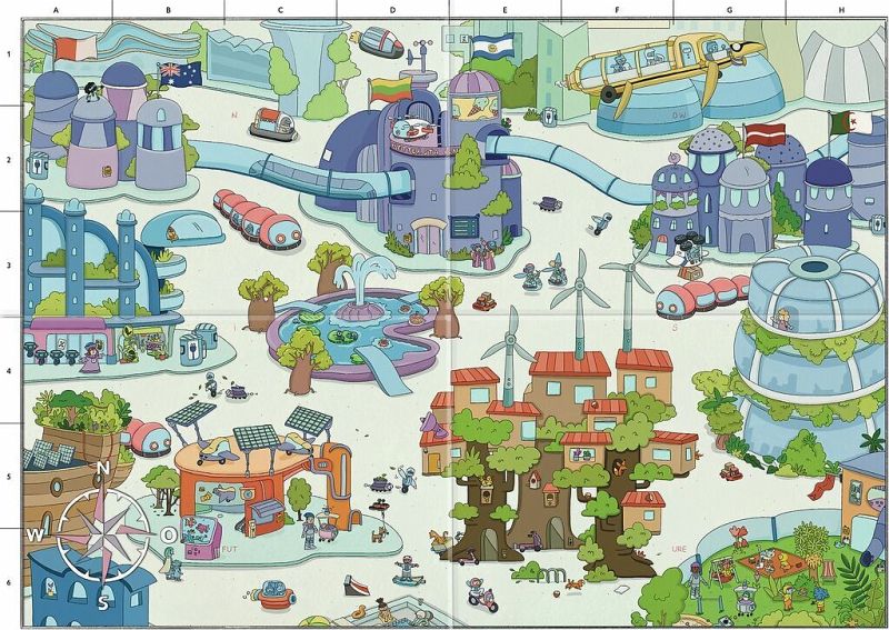 Schon beim Öffnen der Box fällt auf, wie abwechslungsreich und fantasievoll das Spiel gestaltet ist. Insgesamt gibt es sechs große Wimmelszenen auf Faltplänen, die zum Suchen, Malen, Rätseln und Knobeln einladen. Jede dieser Szenen hat ein eigenes Thema – vom geheimnisvollen Ritterabenteuer über das faszinierende Weltall bis hin zum bunten Jahreszeitenbaum oder einer aufregenden Fantasywelt. So ist für jedes Kind etwas Spannendes dabei, ganz egal, ob es lieber träumt, knobelt oder kreativ gestaltet.