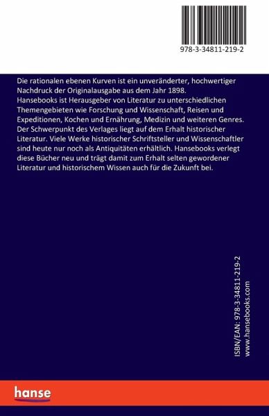 Die rationalen ebenen Kurven ist ein unveränderter, hochwertiger Nachdruck der Originalausgabe aus dem Jahr 1898.Hansebooks ist Herausgeber von Literatur zu unterschiedlichen Themengebieten wie Forschung und Wissenschaft, Reisen und Expeditionen, Kochen und Ernährung, Medizin und weiteren Genres. Der Schwerpunkt des Verlages liegt auf dem Erhalt historischer Literatur. Viele Werke historischer Schriftsteller und Wissenschaftler sind heute nur noch als Antiquitäten erhältlich. Hansebooks verlegt diese Bücher neu und trägt damit zum Erhalt selten gewordener Literatur und historischem Wissen auch für die Zukunft bei.