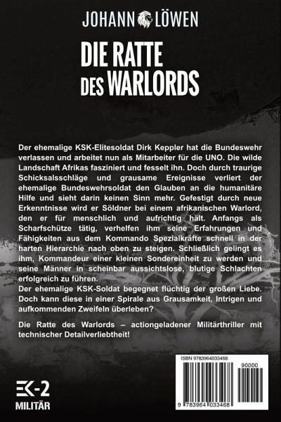 Tauchen Sie ein in eine fremde Welt voller Spannung, Intrigen und ungeschönter Kämpfe. Autor Johann Löwen, bekannt für seine detailreichen und spannungsgeladenen Bücher, legt mit ¿Die Ratte des Warlords ¿ Band 1¿ Der Himmel im Absehen¿ den ersten Band einer Reihe der Extraklasse vor. Die Serie umfasst insgesamt 14 Bände und erscheint jetzt als generalüberholte Neuauflage. Der Autor vereint gekonnt die Genres Polit-Thriller und Kriegsroman, wenn Löwen die wohl spannendste aller Fragen beantwortet: Was würdest Du tun? Klappentext Der ehemalige KSK-Elitesoldat Dirk Keppler hat die Bundeswehr verlassen und arbeitet nun als Mitarbeiter für die UNO. Die wilde Landschaft Afrikas fasziniert und fesselt ihn. Doch durch traurige Schicksalsschläge und grausame Ereignisse verliert der ehemalige Bundeswehrsoldat den Glauben an die humanitäre Hilfe und sieht darin keinen Sinn mehr. Gefestigt durch neue Erkenntnisse wird er Söldner bei einem afrikanischen Warlord, den er für menschlich und aufrichtig hält. Anfangs als Scharfschütze tätig, verhelfen ihm seine Erfahrungen und Fähigkeiten aus dem Kommando Spezialkräfte schnell in der harten Hierarchie nach oben zu steigen. Der ehemalige KSK-Soldat begegnet flüchtig der großen Liebe. Doch kann diese in einer Spirale aus Grausamkeit, Intrigen und aufkommenden Zweifeln überleben? Die Ratte des Warlords ¿ actiongeladener Militärthriller mit technischer Detailverliebtheit!