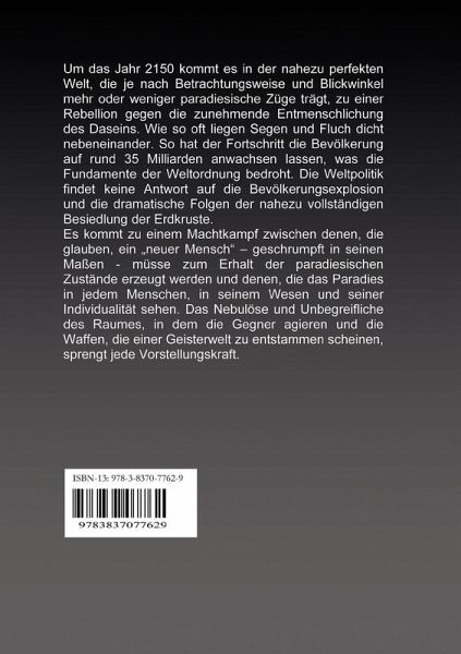 Um das Jahr 2150 sprengt der technische Fortschritt irdische und menschliche Grenzen. Es kommt nach einer Rebellion zu einem finalen Machtkampf. Sollte die Gestalt des Menschen gentechnisch geschrumpft werden, um "Raum" für weitere Entwicklungen zu schaffen? Das Nebulöse und Unbegreifliche des Raumes, in dem die Gegner agieren und ihre Waffen, die einer Geisterwelt zu entstammen scheinen, sprengen jede Vorstellungskraft.