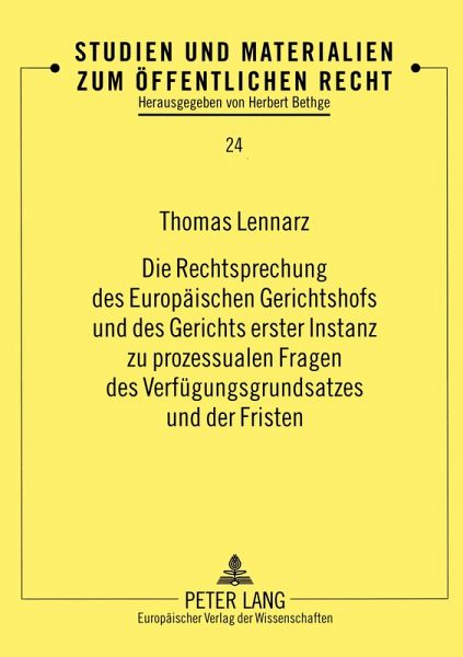 Die Arbeit ist ein Prozessrechtsbuch über das Verfahren vor dem Europäischen Gerichtshof und dem Gericht erster Instanz. Es werden die prozessualen Regelungen zum Verfügungsgrundsatz und zu den Fristen anhand der Rechtsprechung der beiden europäischen Gerichte erklärt und ausführlich kommentiert. Dabei zeigt sich, dass das europäische Gemeinschaftsrecht auch in seinem prozessualen Teil von einem umfangreichen Case-Law höchstrichterlicher Rechtsprechung geprägt ist. Erläutert werden u.a. die prozessualen Fristen und deren genaue Berechnung sowie Fragen der korrekten Verfahrenseinleitung, der Bindung der Gerichte an die Anträge der Kläger, der Klageänderung und Klagerücknahme, des Prozessvergleichs und der Erledigung, des Anerkenntnisses und des Verzichts sowie der Prüfung von Amts wegen.