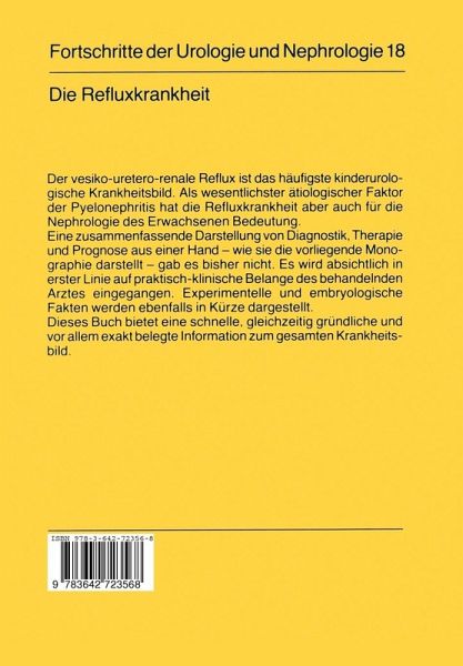- Primare und sekundare VUR sind zu differenzieren, sekundare VUR mtissen kausaI be handelt werden; flir sie gelten die folgenden Oberlegungen nicht. - Wenn auch ein Einzelbefund fur die Wahl der Therapieform nie entscheidend sein darf, so hat sich die radiologische Graduierung nach Heikel u. Parkulainen (1966) in die Grade I-V (Abb. 11-16) doch aIs bedeutsam fur die Prognose erwiesen. Die Stadien I und II soIl ten konservativ behandelt werden, wenn keine Golflochostien vorliegen. Bei konservativer Behandlung ist die niedrig dosierte dauernde der intermittierenden antibiotischen Behandlung deutlich tiberlegen. Unter niedrig dosierter antibiotischer Dauertherapie ist in den Stadien I und II nur sel ten mit einer Verschlechterung zu rechnen. Bisher sind nennenswerte, ernsthafte Nebenwirkungen der niedrig dosierten antibioti schen Dauertherapie nicht zu erwarten. Bei zusatzlichei, auch geringgradiger Harnrohrenenge soUte bei VUR der Grade I-III immer die moglichst frtihe Beseitigungdes distalen Abflu~hindernisses vorgenommen werden (vgl. nachfolgendes Kapitel und Tab. 7 und 8). Operieren sollte man vor Vollendung des 3. Lebensjahres nur bei vitaler Indikation. Da andererseits nach dem ersten Lebensjahr kein signiflkanter Unterschied in der Hei lungsrate bezogen auf die Altersgruppen besteht, sollten VUR der Grade IV und V moglichst frtih durch ARP bzw. Nephroureterektomie versorgt werden (vgl. 10.4. Ope rative Therapie). Paraureterale Divertikel sind eine Kontraindikation zur konservativen Therapie. 10.4. Operative Therapie Vor dem umfangreichen Tell tiber die Antirefluxplastiken (ARP) wird zuniichst besprochen, wann eine ARP noch nicht (distaIes Abflu~hindernis) oder nicht mehr (Nephroureter ektomie) sinnvoll ist.