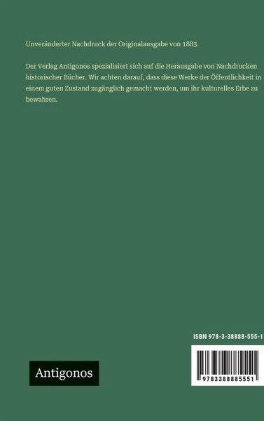 Unveränderter Nachdruck der Originalausgabe von 1883. Der Verlag Antigonos spezialisiert sich auf die Herausgabe von Nachdrucken historischer Bücher. Wir achten darauf, dass diese Werke der Öffentlichkeit in einem guten Zustand zugänglich gemacht werden, um ihr kulturelles Erbe zu bewahren.