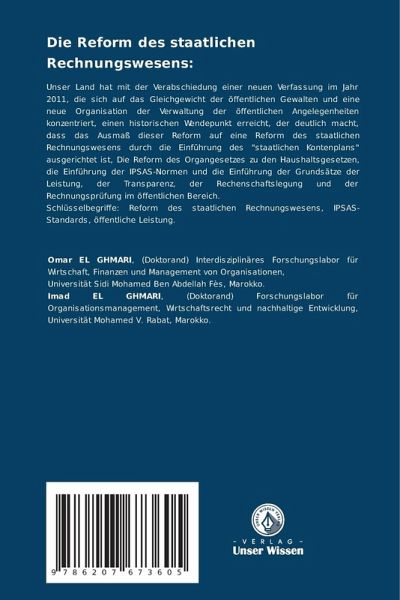 Unser Land hat mit der Verabschiedung einer neuen Verfassung im Jahr 2011, die sich auf das Gleichgewicht der öffentlichen Gewalten und eine neue Organisation der Verwaltung der öffentlichen Angelegenheiten konzentriert, einen historischen Wendepunkt erreicht, der deutlich macht, dass das Ausmaß dieser Reform auf eine Reform des staatlichen Rechnungswesens durch die Einführung des "staatlichen Kontenplans" ausgerichtet ist, Die Reform des Organgesetzes zu den Haushaltsgesetzen, die Einführung der IPSAS-Normen und die Einführung der Grundsätze der Leistung, der Transparenz, der Rechenschaftslegung und der Rechnungsprüfung im öffentlichen Bereich.Schlüsselbegriffe: Reform des staatlichen Rechnungswesens, IPSAS-Standards, öffentliche Leistung.