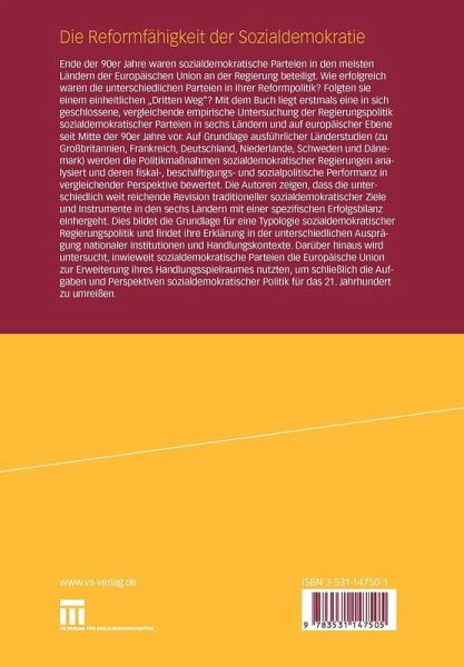 Ende der 90er Jahre waren sozialdemokratische Parteien in den meisten Ländern der Europäischen Union an der Regierung beteiligt. Wie erfolgreich waren die unterschiedlichen Parteien in ihrer Reformpolitik? Folgten sie einem einheitlichen"Dritten Weg"? Mit dem Buch liegt eine in sich geschlossene, vergleichende empirische Untersuchung der Regierungspolitik sozialdemokratischer Parteien auf europäischer Ebene seit Mitte der 90er Jahre vor. Auf Grundlage von Länderstudien (zu Großbritannien, Frankreich, Deutschland, Niederlande, Schweden und Dänemark) wird die Politik sozialdemokratischer Regierungen analysiert und deren Fiskal-, Beschäftigungs- und Sozialpolitik in vergleichender Perspektive bewertet. Außerdem untersuchen die Autoren, inwieweit sozialdemokratische Parteien die Europäische Union zur Erweiterung ihres Handlungsspielraumes nutzten.