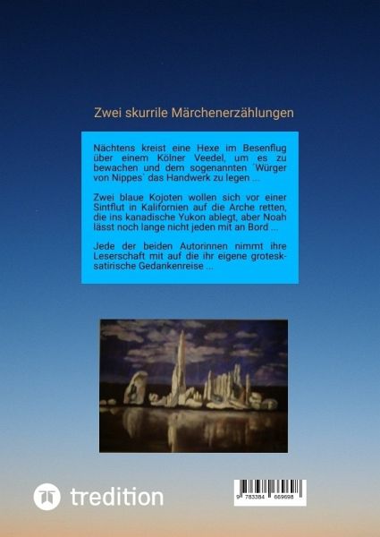 Die beiden satirischen Märchen haben sehr unterschiedliche Schauplätze. In `Hexerei im Altenheim` kreist Salominka Gaukel nächtens per Besen über der Stadt, um ihr Veedel zu bewachen und sich den sogenannten ´Würger von Nippes` zu schnappen. Man kann die Geschichte als ´Köln-Krimi der besonderen Art` ansehen. In der titelgebenden ´Reise der blauen Kojoten` geht es um die Flucht eines Kojotenpaars vor der nächsten Sintflut. Die Arche soll die Tiere ins kanadische Yukon retten, doch Noah nimmt noch lange nicht jeden mit. Die blauen Kojoten sind ihm vom letzten Mal her als üble Schurken in…mehr