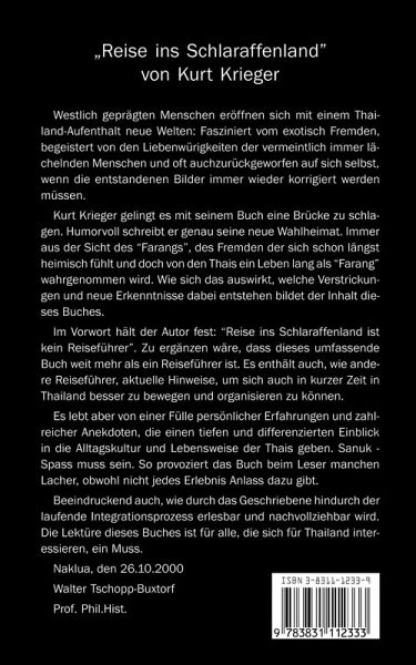 Westlich geprägten Menschen eröffnen sich mit einem Thailand-Aufenthalt neue Welten: Fasziniert vom exotisch Fremden, begeistert von den Liebenswürdigkeiten der vermeintlich immer lächelnden Menschen und oft auch zurückgeworfen auf sich selbst, wenn die entstandenen Bilder immer wieder korrigiert werden müssen. Kurt Krieger gelingt es mit seinem Buch eine Brücke zu schlagen. Humorvoll beschreibt er genau seine neue Wahlheimat. Immer aus der Sicht des 'Farangs', des Fremden, der sich schon längst heimisch fühlt und doch von den Thais ein Leben lang als 'Farang' wahrgenommen wird. Wie sich das auswirkt, welche Verstrickungen und neuen Erkenntnisse dabei entstehen, bildet den Inhalt dieses Buches.