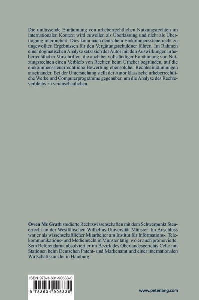 Die umfassende Einräumung von urheberrechtlichen Nutzungsrechten im internationalen Kontext wird zuweilen als Überlassung und nicht als Übertragung interpretiert. Dies kann nach deutschem Einkommenssteuerrecht zu ungewollten Ergebnissen für den Vergütungsschuldner führen. Im Rahmen einer dogmatischen Analyse setzt sich der Autor mit den Auswirkungen urheberrechtlicher Vorschriften, die auch bei vollständiger Einräumung von Nutzungsrechten einen Verbleib von Rechten beim Urheber begründen, auf die einkommenssteuerrechtliche Bewertung ebensolcher Rechteeinräumungen auseinander. Bei der Untersuchung stellt der Autor klassische urheberrechtliche Werke und Computerprogramme gegenüber, um die Analyse des Rechteverbleibs zu veranschaulichen.