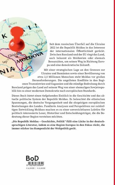 Seit dem russischen Überfall auf die Ukraine 2022 ist die Republik Moldau in das Interesse der internationalen Öffentlichkeit gerückt. Zwischen Russland und der EU ringt das Land, auch bekannt als Moldawien oder ehemals Bessarabien, um seinen Weg in Richtung Europa und eine demokratische Zukunft. Mit einer strategischen Lage an den Grenzen zur Ukraine und Rumänien sowie einer Bevölkerung von etwa 2,5 Millionen Menschen steht Moldau vor großen Herausforderungen. Die ungelösten Konflikte in den Regionen Transnistrien und Gagausien und die ständige Bedrohung durch Russland prägen das Land auf seinem Weg von einer ehemaligen Sowjetrepublik hin zu einer modernen Demokratie nach europäischen Standards. Dieses Buch bietet einen tiefgehenden Einblick in die Geschichte und das aktuelle politische System der Republik Moldau. Es beleuchtet die ethnischen Spannungen, die deutsche Vergangenheit und die ehrgeizigen europäischen Bestrebungen des Landes. Fundierte Analysen und Perspektiven zur zukünftigen Entwicklung Moldaus machen es zu einer unverzichtbaren Lektüre für politisch interessierte Leser, Historiker und Entscheidungsträger, die die Bedeutung dieser Region verstehen möchten. "Die Republik Moldau - Geschichte, Politik" füllt eine Lücke in der deutschsprachigen Literatur, indem es eine Region Europas in den Fokus rückt, die immer stärker ins Rampenlicht der Weltpolitik gerät.