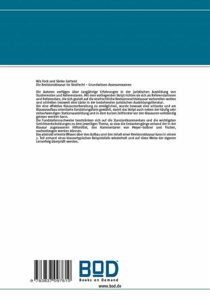 Mit dem vorliegenden Skript richten sich die Verfasser an Referendarinnen und Referendare, die sich gezielt auf die strafrechtliche Revisionsrechtsklausur vorbereiten wollen und schließen insoweit eine Lücke in der bestehenden juristischen Ausbildungsliteratur.Um eine effektive Klausurvorbereitung zu ermöglichen, wurde bewusst eine schlanke und am Klausuraufbau orientierte Darstellungsform gewählt, damit das Skript auch neben der häufig sehr zeitaufwendigen Stationsausbildung und in dem kurzen Zeitfenster vor den Klausuren vollständig gelesen werden kann.Die Fundstellennachweise beschränken sich auf die Standardkommentare und die wichtigsten Gerichtsentscheidungen zu dem jeweiligen Thema, so dass die Gedankengänge anhand der in der Klausur zugelassenen Hilfsmittel, den Kommentaren von Meyer-Goßner und Fischer, nachvollzogen werden können.Das abstrakt erlernte Wissen über den Aufbau und den Inhalt einer Revisionsklausur kann in einem 2. Teil anhand eines klausurtypischen Beispielsfalls wiederholt und auf diese Weise der eigenen Lernerfolg überprüft werden.